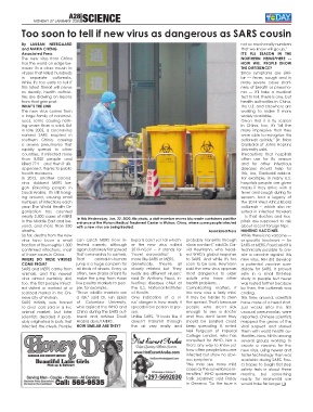 nese city of Wuhan. a risk," said Dr. Ian Lipkin One indication of a vi- it may be harder to stem This time around, scientists