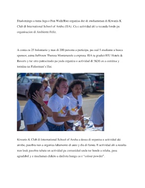 Club di International School of Aruba (ISA). Cu e actividad aki a recauda fondo pa
