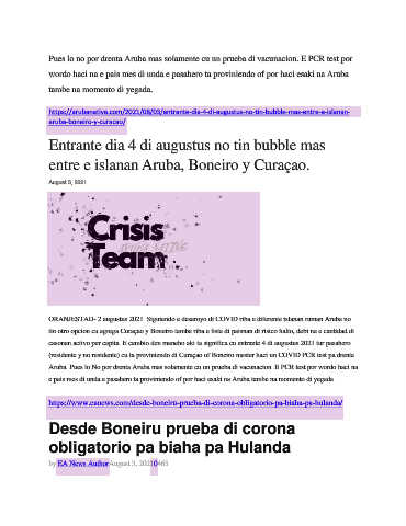 Aruba. Pues lo No por drenta Aruba mas solamente cu un prueba di vacunacion. E PCR test por wordo haci na