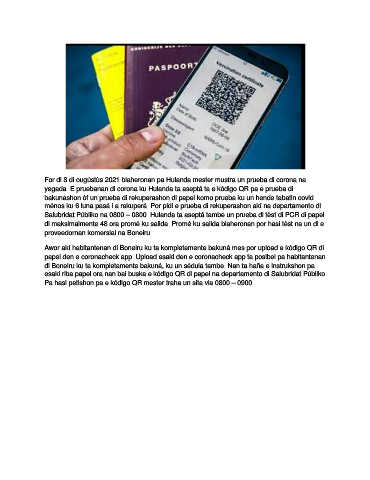 For di 8 di ougústùs 2021 biaheronan pa Hulanda mester mustra un prueba di corona na
