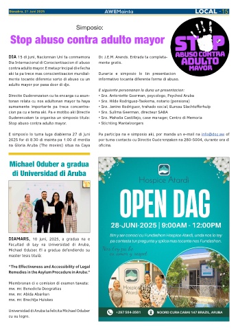 2025 for di 8:30 di mainta pa 1:00 di merdia por tuma contacto cu Directie Ouderenzaken na 280-5004, durante ora di