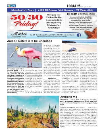 that are a preserved area builds awareness of Aruba’s ture has to offer. We cannot paradise. We truly appreci-
