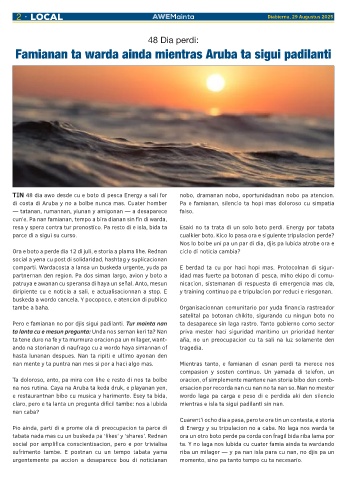 di costa di Aruba y no a bolbe nunca mas. Cuater homber Pa e famianan, silencio ta hopi mas doloroso cu simpatia