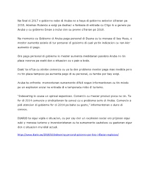 Aruba y cu gobierno Eman a inclui den su prome cifranan pa 2018.