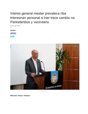 Interes general mester prevalece riba interesnan personal si kier trece cambio na Parkietenbos y vecindario October 22, 2019 0 SHARE Facebook Twitter - Advertisement - Minister Otmar Oduber: