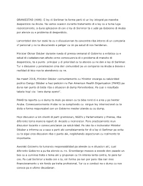 recientemente, a duna splicacion di con e ley di Serlimar ta e yabi pa Gobierno di Aruba