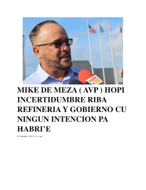 MIKE DE MEZA ( AVP ) HOPI INCERTIDUMBRE RIBA REFINERIA Y GOBIERNO CU NINGUN INTENCION PA HABRI’E 22 October, 2019, 11:14 am 330