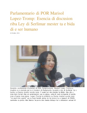 Durante conferencia di prensa di POR, Parlamentario Marisol Lopez-Tromp a