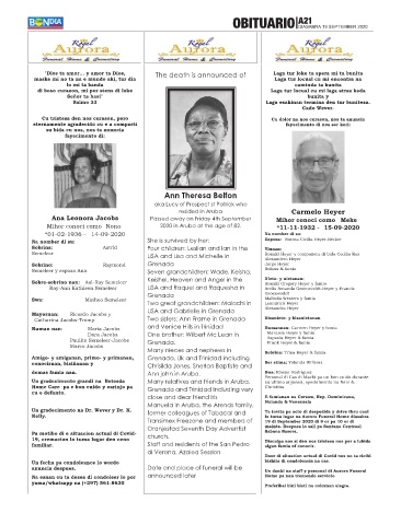 anuncia despues. Date and place of funeral will be Un danki na staff y personal di Aurora Funeral