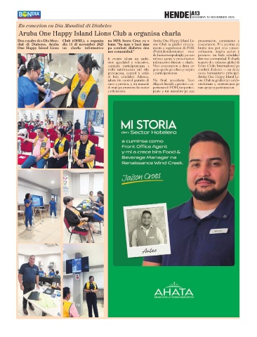 dial di Diabetes, Aruba dia 11 di november 2025 lema “Sa mas y haci mas ons Club ta gradici sincera- cooperacion. El a acentua cu