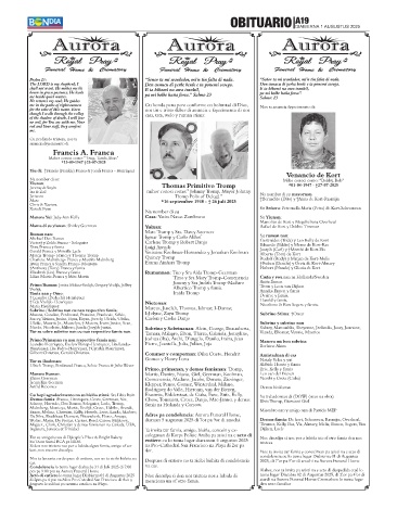 Da Silva, Bradshaw, Dennert, Nieuwkerk, Flores, Amaya, Adres pa condolencia: Aurora Funeral Home,