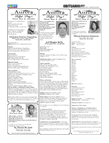 diasabra 2 augustus 2025 di 9 am pa 11 am na Aurora 2025, di 2’or pa 4’or di atardi na Pray Funeral Home na San