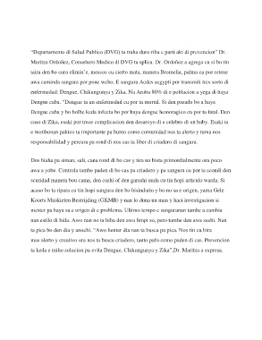 Dengue caba. “Dengue ta un enfermedad cu por ta mortal. Si den pasado bo a haya