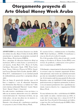 n’e proyecto di arte di Global Money Week. al Money Week Aruba’.