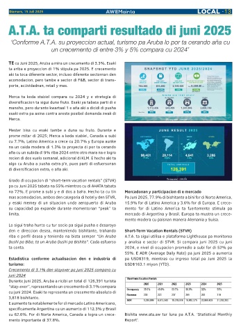 Crecemento di 3.1% den stayover pa juni 2025 compara cu