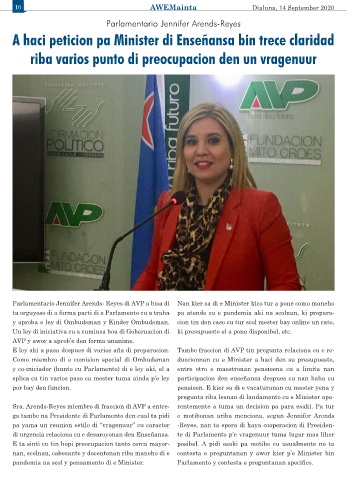 Sra. Arends-Reyes miembro di fraccion di AVP a entre- rentemente a tuma un decision pa para esaki. Pa tur