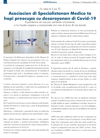 tual desaroyonan di e pandemia di Covid-19 na Aruba. disponibel, segun ASHA.
