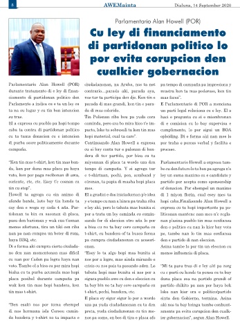 Parlamentario Alan Howell (POR) ciudadanonan, na Aruba, nos ta net pa tempo di campaña pa impresiona y