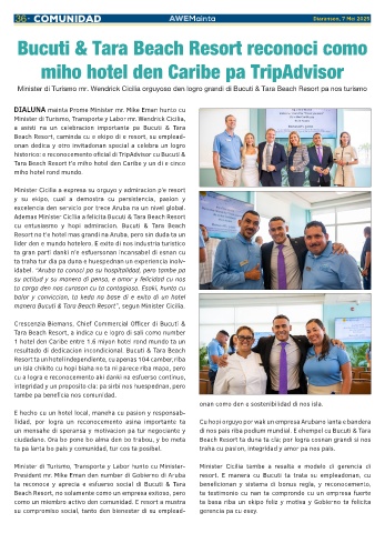 manera Bucuti & Tara Beach Resort”, segun Minister Cicilia.