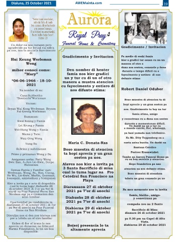 atardi na Pray Funeral Home San 2021 pa 7’or di anochi