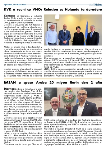a spaar 50.000 florin. segun Alvin Molina cu un fusion cu IMSAN ta algo cu Hulanda