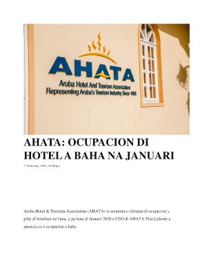 Aruba Hotel & Tourism Association (AHATA) ta acumula e cifranan di ocupacion y