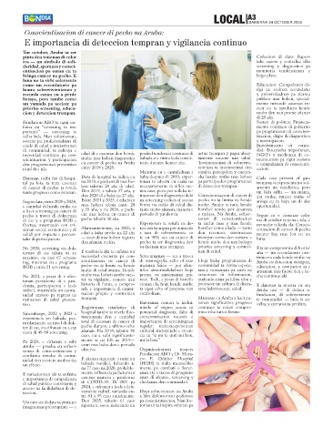 pecho a traves di dokternan ent mas hoben cu cancer di periodo di pandemia. e malesa. Na Aruba, esfuer- Segun cu e cintanan color