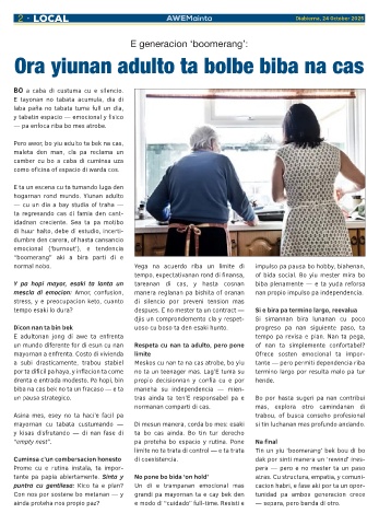 tante pa papia abiertamente. Sinta y No pone bo bida ‘on hold’ atras. Cu structura, empatia, y comuni-