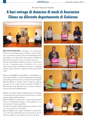 Chines a haci entrega di mask na Minister Xiomara Mad-