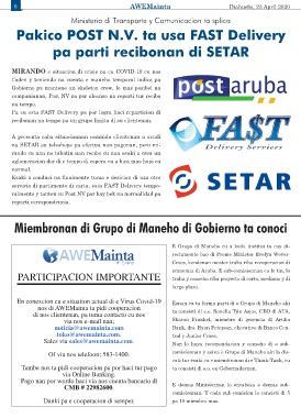 En conexcion cu e situation actual di e Virus Covid-19 Esnan cu ta forma parti di e Grupo di Maneho aki