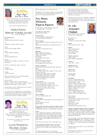 Despensa nos si den no tristeza nos por a lubida Elsa y Dominico Tromp – Figaroa y famia †Martha y † Roberto Herrera y famia
