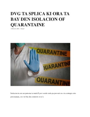 DVG TA SPLICA KI ORA TA BAY DEN ISOLACION OF QUARANTAINE 19 March, 2020, 1:54 pm 383 Isolacion ta ora un persona ta malo.E por wordo isola pa preveni cu e ta contagia otro personanan, cu e ta bin den contacto cu n’e.