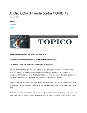 Esaki no a pasa. E coronavirus nobo a kita tur atencion di tur cos. Diripiente COVID-19