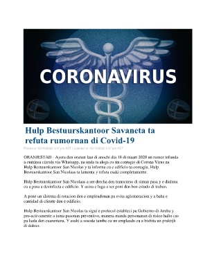 ORANJESTAD - Ayera den oranan laat di anochi dia 18 di maart 2020 un rumor infunda