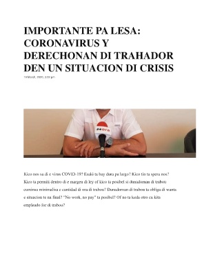 Kico nos sa di e virus COVID-19? Esaki ta bay dura pa largo? Kico tin ta spera nos?