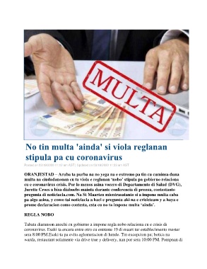 multa na ciudadanonan cu ta viola e reglanan ‘nobo’ stipula pa gobierno relaciona