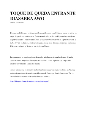 toque de queda pa henter Aruba. Gobierno a dicidi di activa esaki pa motibo cu a ripara