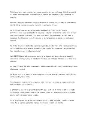 For di momento cu e coronavirus nobo a presenta su mes na Aruba, DIARIO a adverti