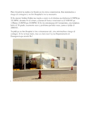 Pues Hospital ta suplica tur hende pa tin extra comprension. Ban minimalisa e