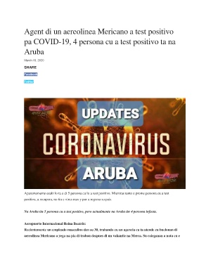 Na Aruba tin 5 persona cu a test positivo, pero actualmente na Aruba tin 4 persona infecta.
