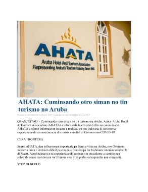 & Tourism Association (AHATA) a informa diahuebs atardi den un comunicado.