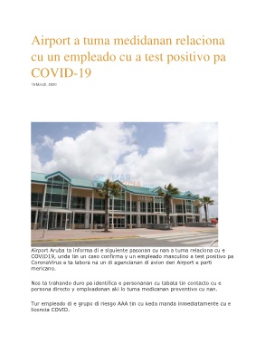 Airport Aruba ta informa di e siguiente pasonan cu nan a tuma relaciona cu e