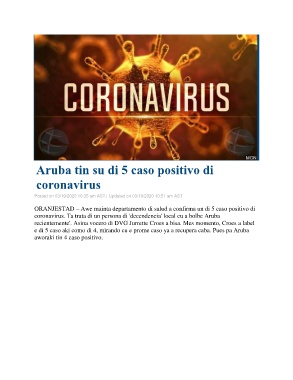coronavirus. Ta trata di un persona di 'decendencia' local cu a bolbe Aruba
