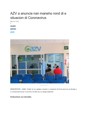 ORANJESTAD (AAN): Esaki ta un update tocante e situacion di Coronavirus na Aruba y