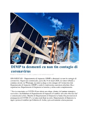 coronavirus. Segun nan comunicado, ayera dia 18 di maart 2020, un rumor infunda a