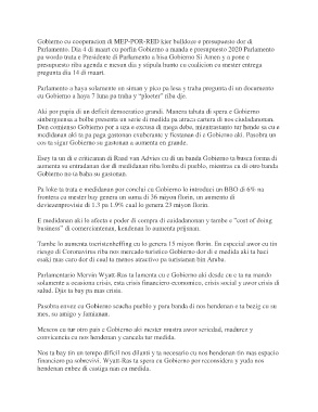 Gobierno cu cooperacion di MEP-POR-RED kier bulldoze e presupuesto dor di