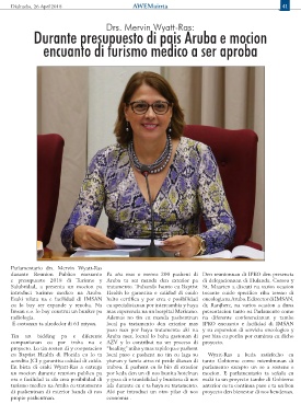introduci turismo medico na Aruba. Health lo garantisa e calidad di cuido tocante cuido specifico riba tereno di
