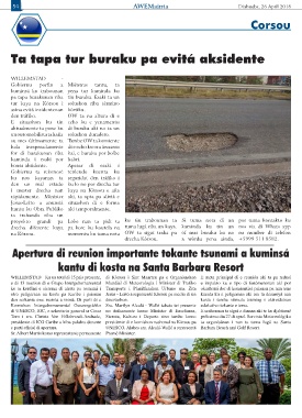 ku ta kordiná e sistema di alerta pa tsunami i Transporte i Planifikashon Urbano sra. Zita okashoná dor di konsientisá paisnan pa nan tene