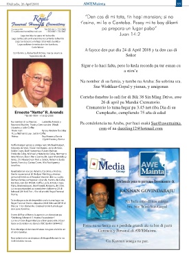Na nomber di su Yiunan: Ludmilla Arends y Pa condolencia na Aruba, por haci esaki Sue@awemainta.