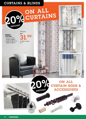 curtains & Blinds ON ALL 20% CURTAINS Starting at 39. 99 designs available 31. TRENDY CURTAINS 99 • Several colors & • H 240 x W 140 cm or or 1280 Fun Miles H 260 x W 140 cm 214737 20% CURTAIN RODS & ON ALL ACCESSOIRES 10